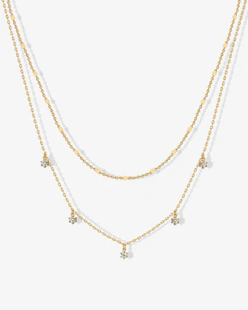 Measurements: Length: Layer 1: 15"; Layer 2: 16" + 3" extender; 3mm Cubic Zirconia